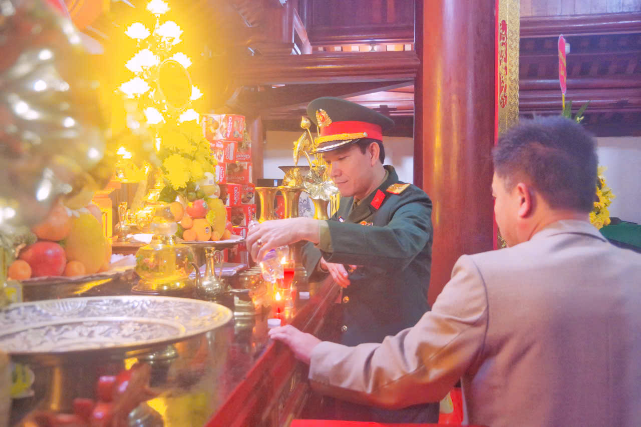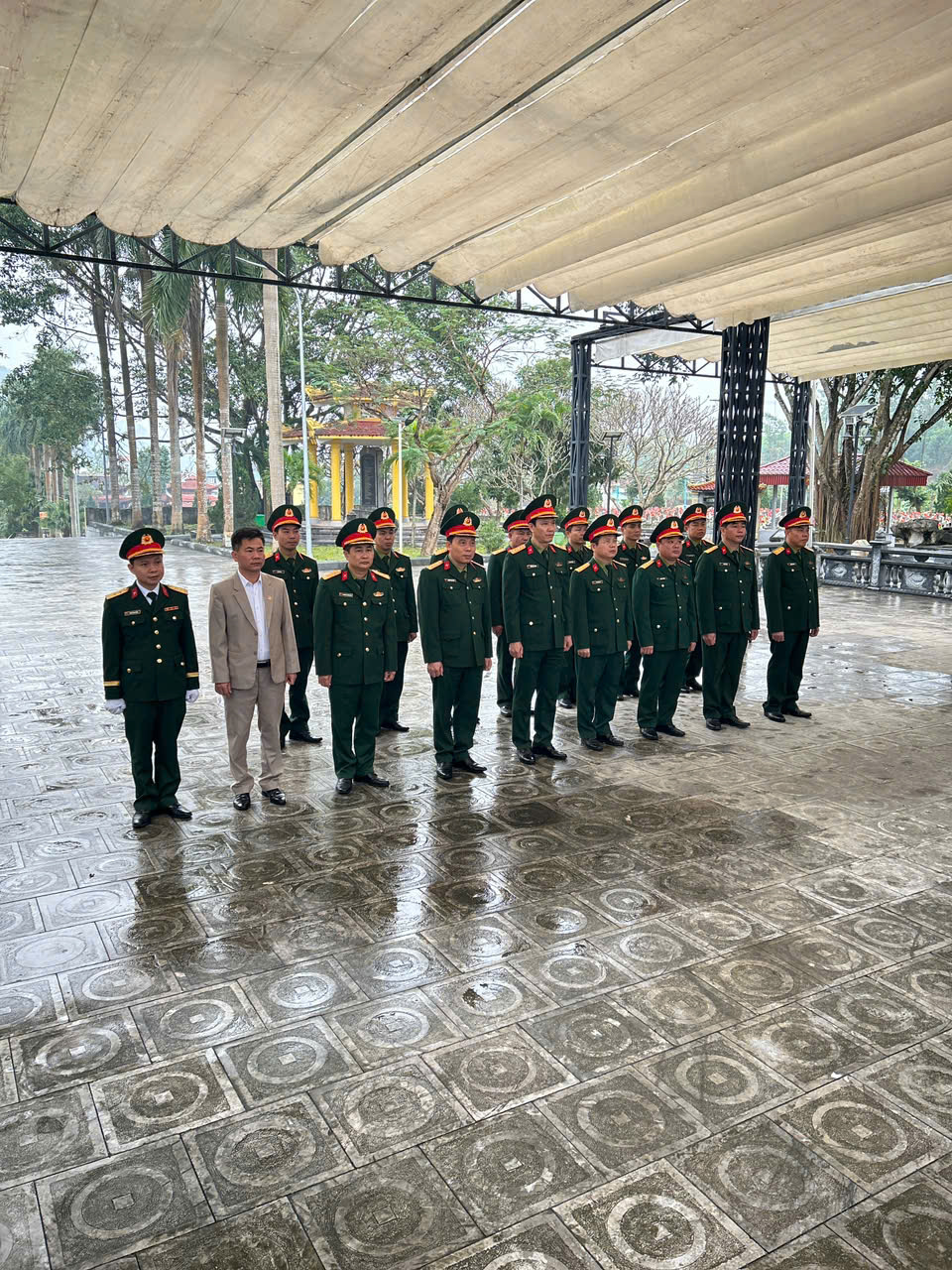 Nhân dịp kỷ niệm 81 năm ngày thành lập Quân đội nhân dân Việt Nam (22/12/1944 - 22/12/2025); 36 năm ngày hội Quốc phòng toàn dân (22/12/1989 - 22/12/2025). Sáng ngày 17/12/2025, Thừa ủy quyền của Quân ủy Trung ương, Bộ quốc phòng, Đoàn công tác của Thường vụ Đảng ủy, Bộ Tư lệnh Quân khu 4 do đồng chí Đại tá Đinh Xuân Hướng, Phó Chủ nhiệm Chính trị Quân khu làm trưởng Đoàn đã về Nghĩa trang Liệt Sỹ Việt - Lào tại xã Anh Sơn, trang trọng tổ chức Lễ dâng hoa, dâng hương lên anh linh Chủ tịch Hồ Chí Minh và các Anh hùng Liệt Sỹ. Tham gia cùng Đoàn còn có đồng chí Đại tá Nguyễn Trọng Sâm, Trưởng Phòng Chính sách, Cục Chính trị Quân khu; đồng chí Đại tá Phan Quốc Hùng, Phó Chủ nhiệm Chính trị, Bộ Chỉ huy Quân sự tỉnh Nghệ An. Về phía Ban Chỉ huy Phòng thủ khu vực 5 - Anh Sơn có đồng chí Thượng tá Phạm Huy Thông, Bí thư Đảng ủy, Chính ủy cùng các đồng chí trong Đảng ủy, chỉ huy và đại diện cán bộ, nhân viên của đơn vị. Với lòng thành kính sâu sắc, Đoàn đại biểu đã thắp nén hương thơm, kính dâng lẵng hoa tươi thắm lên anh linh Chủ tịch Hồ Chí Minh vĩ đại và các anh hùng Liệt sỹ đã chiến đấu anh dũng, hy sinh vì sự nghiệp giải phóng dân tộc, vì nghĩa vụ quốc tế cao cả, vì sự nghiệp xây dựng, chiến đấu, trưởng thành của Quân đội nhân dân Việt Nam anh hùng. Cũng trong dịp này Đoàn đã trao tặng quà của Quân ủy Trung ương, Bộ Quốc Phòng cho Ban quản lý nghĩa trang. Sau đây là một số hình ảnh dâng hoa dâng hương của đoàn.
